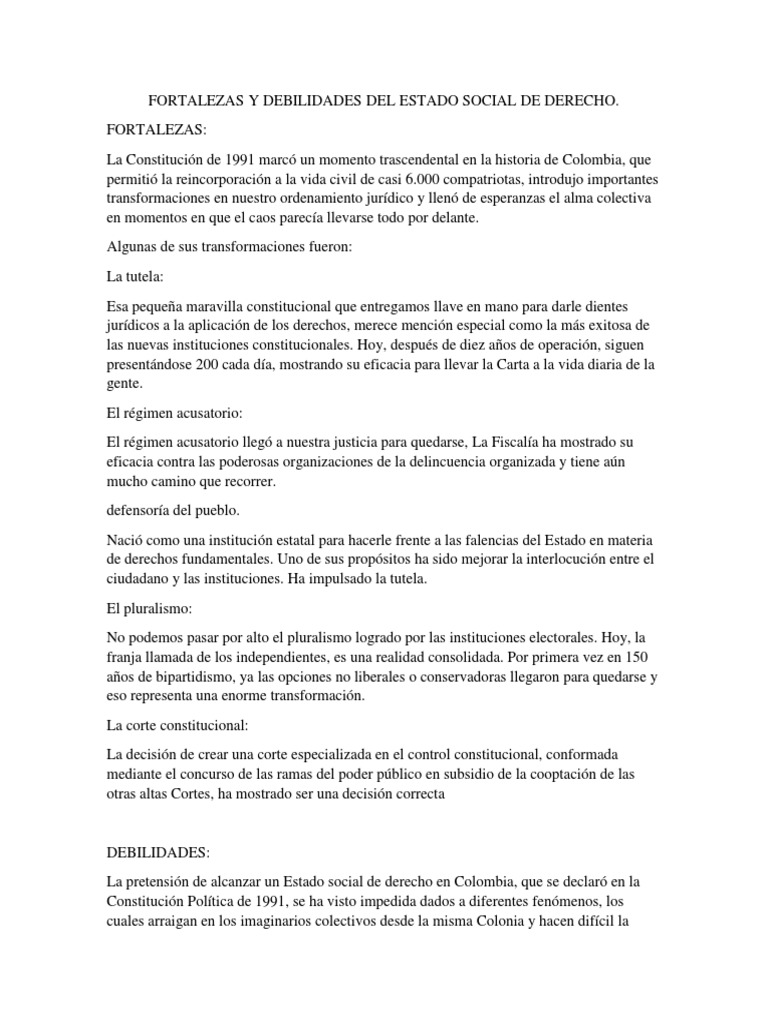 Fortalezas Y Debilidades Del Estado Social De Derecho Corrupcion Politica Estado Politica