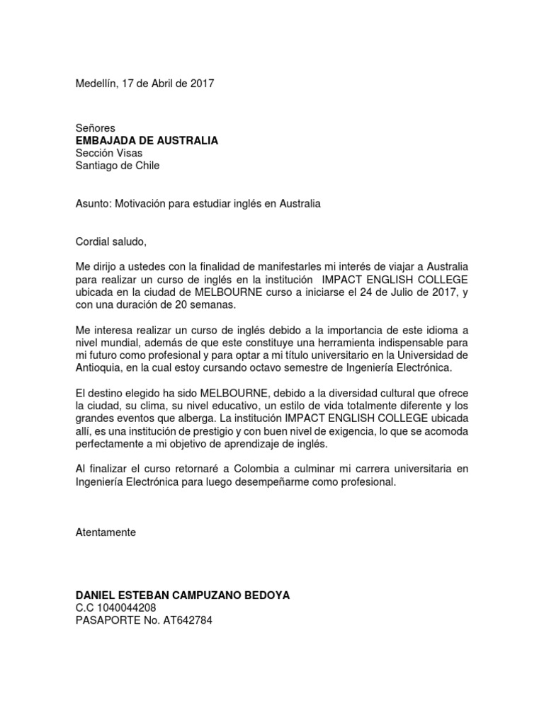 Ejemplo Carta De Motivacion Para Visado Ejemplos De Carta